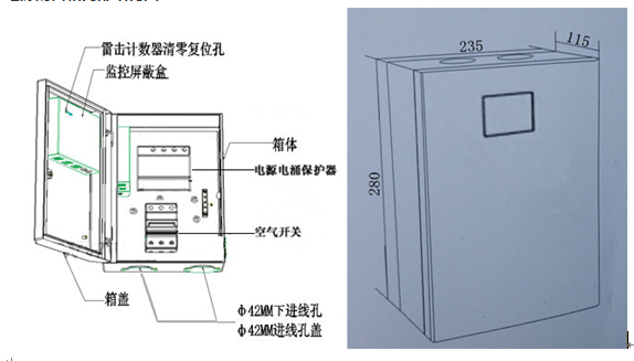 電源防雷箱內(nèi)部結(jié)構(gòu)圖/電源綜合防雷箱尺寸圖: