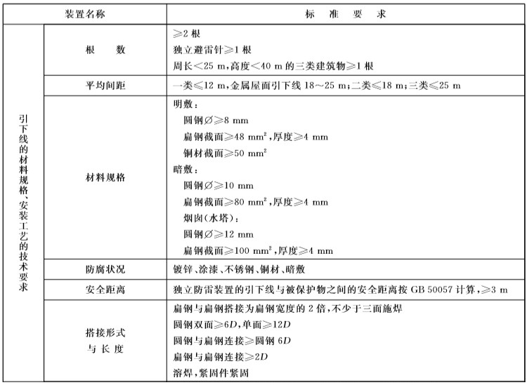 的重要組成部分。為了保證雷電流的泄放效果,防雷工程中用到的引下線要經(jīng)得起強(qiáng)大的機(jī)械力,并具有較高的耐熱性和耐腐蝕性,因此引下線的選材和安裝工藝就顯得尤為重要.