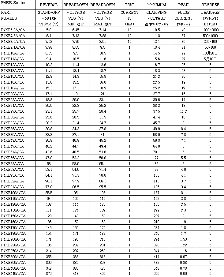 最大反向電壓:6.8-440V