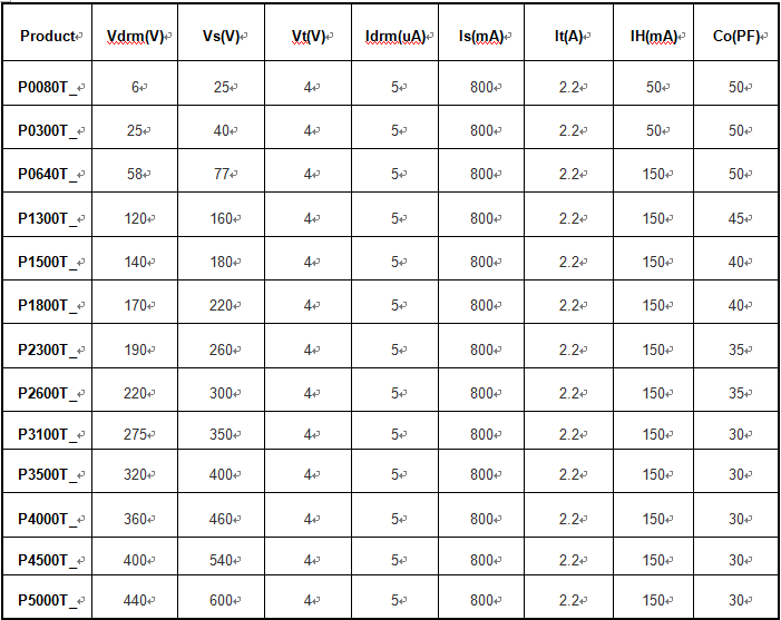 @10/700μs;PXXXOTA:2KV,PXXX0TB:4KA