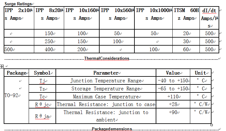 ●Listed SIDACtors are bi-directional. All electrical parameters & surge ratings apply to forward and reverse polarities.