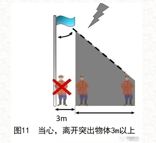 如果被閃電擊中的是高的物體,如樹木或桅桿,別忘了它可能會(huì)向四周閃絡(luò)放電。